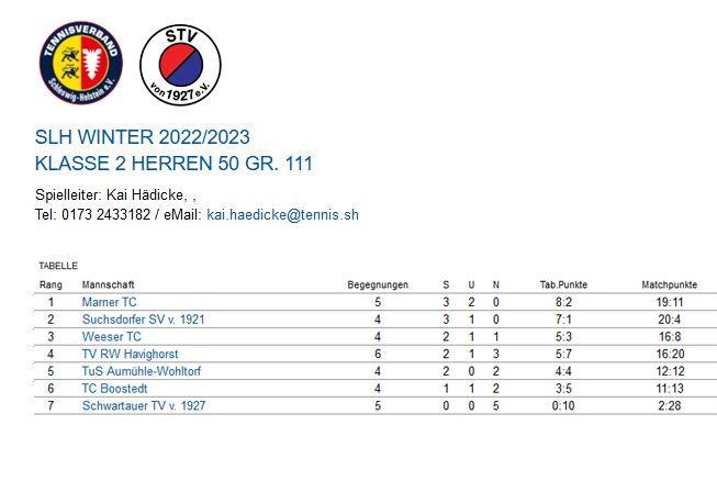Die H50 als Tabellenletzte mit Thorsten M., Lars-O. B., Carsten B, Markus E., Bodo H., Matthias H. und Götz T. hatten die Tabellenvorletzten vom TV RW Havighorst zu Gast. Mit unseren 0:8 Tabellenpunkten ging es (bei zwei Absteigern in dieser Saison) um nichts mehr, also konnte im Prinzip relativ entspannt aufgeschlagen werden. Thorsten und Bodo halfen aus der H55 aus, da unsere Nr. 1 kurzfristig aus gesundheitlichen Gründen ausfiel.