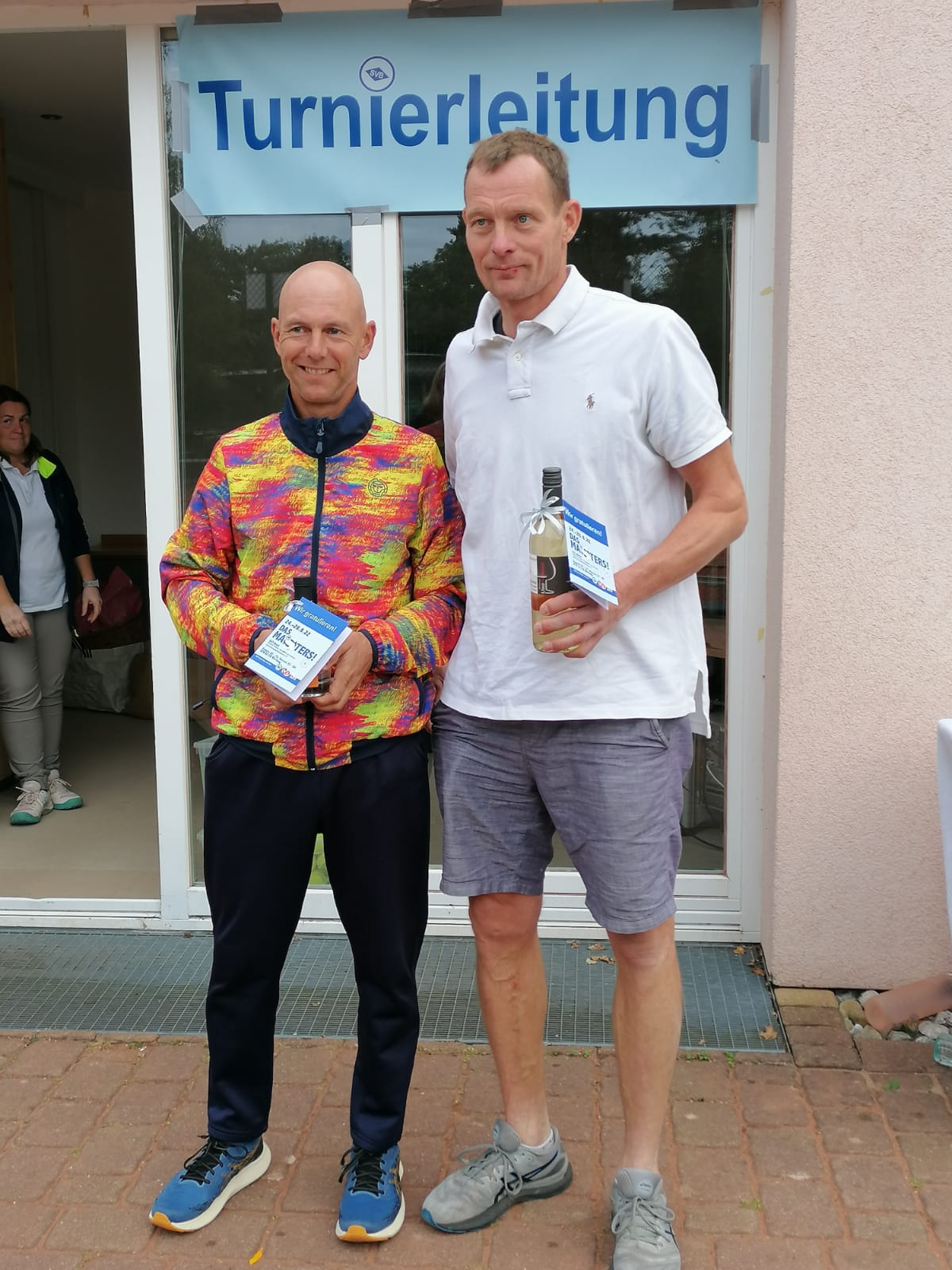 Abschluss der Vereinsmeisterschaften 2025 Am Samstag, 13.9.2025 gab es den großen Abschluss der diesjährigen Vereinsmeisterschaften im STV mit den Halbfinal- und Finalspielen im Herren Doppel und Mixed sowie einer bunten Mischung vieler weiterer Spiele , zu der knapp 40 spielfreudige Vereinsmitglieder unter der Federführung des Orga-Teams Matte & Petra zusammen kamen. Die Vereinsmeisterschaften insgesamt wurden bereits seit Mai in vier verschiedenen Doppel- und Mixed-Konkurrenzen ausgespielt. Hierbei gab es beim Damen Doppel sowie bei den STV Oldies jeweils fünf Spielpaarungen, die in Gruppen „Jeder gegen Jeden“ angetreten sind. Beim Herren Doppel und beim Mixed gab es 16er Felder mit einem besonderen Spielmodus „Doppelte-K.O.-Runde plus“, um möglichst viele Spiele zu haben. Erfolgreichste Spielerin war Claudia Löhrke , die sowohl im Damen Doppel an der Seite ihrer Tochter Marissa als auch im Mixed an der Seite von Sönke Reimers Vereinsmeisterin wurde. Die mit 12 Jahren jüngste Spielerin war unser Nachwuchstalent Maja Godenschweger , die gemeinsam mit ihrem Vater Lars im Mixed-Finale nach vorherigen 4 Siegen nur äußerst knapp gegen Claudia & Sönke unterlag. Damen Doppel Im letzten Gruppenspiel ging es bei den Damen um den Titel, denn sowohl Claudia & Marissa als auch das bestens eingespielte Doppel Tine & Meike hatten bis dahin alle ihre Spiele gewonnen. Hier gewannen bereits am Mittwoch, 10.09.2025 Claudia & Marissa in einem sehr sehenswerten Spiel mit 6:2, 6:4 ihren ersten gemeinsamen Vereinsmeistertitel . Den dritten Platz erreichten Sonja & Renata durch ihre Siege gegen Petra & Andi sowie gegen Carmen & Mara. STV Oldies Bei den Oldies ging es in den Gruppenspielen sehr ausgeglichen zu. Vereinsmeister wurden Jens & Martin , die mit insgesamt 3 Siegen und nur einer Niederlage mit 6:2 die meisten Punkte einsammelten. Die Paarungen Klaus & KP, Wolfgang G. & Jörg K. sowie Ecki & Siggi holten mit jeweils zwei Siegen und 2 Niederlagen alle jeweils 4:4 Punkte. Mixed In der Mixed-Konkurrenz wurden insgesamt 26 Spiele ausgetragen. Hierbei gab es unter den drei Top-Teams besonders spannende Spiele, da sie alle erst im Match-Tiebreak entschieden wurden. Auf dem Weg zum Finale trafen Maja & Lars in der dritten Runde bereits einmal auf Claudia & Sönke und konnten dies mit 7:6, 4:6 und 11:9 gewinnen. Danach siegten sie auch gegen die bis dahin erfolgreichen Anke & Bertzi mit 7:6, 3:6 und 10:7. Durch den Modus der doppelten K-.O. Runde nutzen Claudia & Sönke jedoch ihre 2. Chance. Nach zwei weiteren Siegen auf der linken Tableau-Seite gegen Marnie & Klaus sowie gegen Steffi & Julian, stieg am Samstagvormittag das Halbfinale gegen Anke & Bertzi, das sie mit 6:3, 3:6 und 10:8 gewannen. So kam es zu ihrer erneuten Begegnung gegen Maja & Lars, das sie dieses Mal in einem wieder sehr tollen Spiel mit 6:7, 6:2 und 10:6 für sich entscheiden konnten. Herren Doppel Auch im Herren Doppel wurden aufgrund des besonderen Spiel-Modus insgesamt etwa 20 Matches ausgetragen. Bis zum Ende ungeschlagen blieb das erfolgreiche Doppel Jonas & Julian aus unserer 1. Herren , das sich auch im großen Finale am Samstagnachmittag mit 6:2 und 6:4 gegen Stefan & Markus nicht mehr den Titel nehmen ließen. Zuvor hatten sich am Vormittag Stefan & Markus im Halbfinale gegen die Youngster Tim & Jona mit 6:3, 6:7 und 10:6 durchgesetzt. Wir gratulieren den diesjährigen Vereinsmeistern und danken allen - auch den Zuschauern - für die vielen schönen und fairen Spiele, die das Vereinsleben wieder sehr bereichert haben. Siegerehrung / Abschluss Neben den Pokalen für die Erstplatzierten gab es bei der Siegerehrung am späten Nachmittag für alle Teilnehmenden ein schönes Handtuch , das von der Sparkasse Immobiliengesellschaft Holstein gesponsert wurde. Vielen Dank dafür! Zudem ein großes Dankeschön an dieser Stelle auch nochmals an unser tolles Orga-Team Matte & Petra , ohne die auch die diesjährige Vereinsmeisterschaft so nicht hätte stattfinden können. zur Bildergalerie